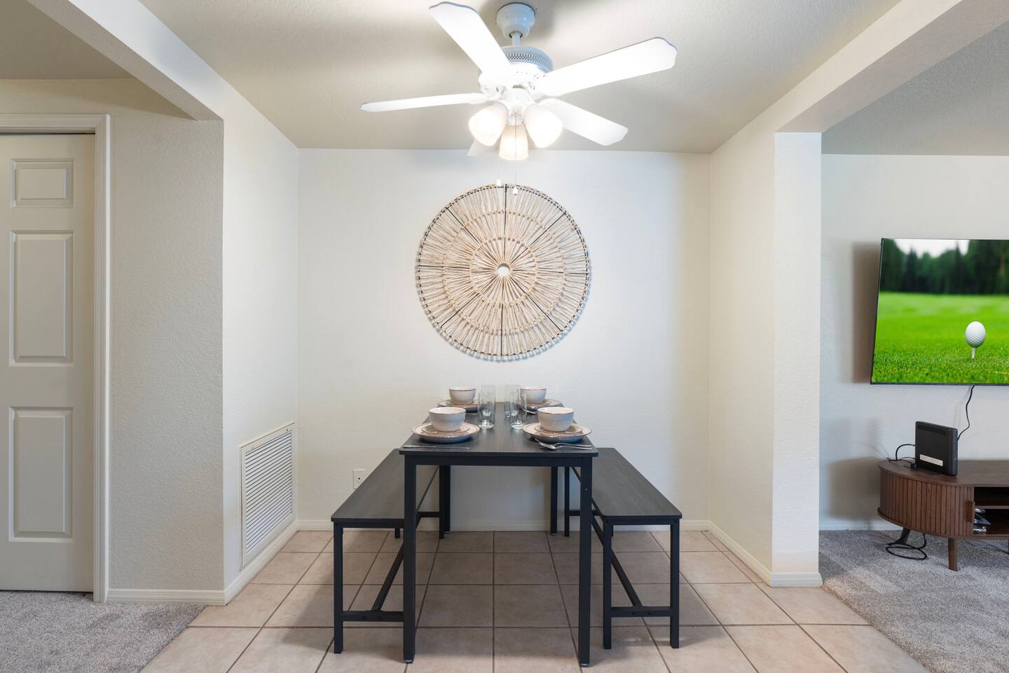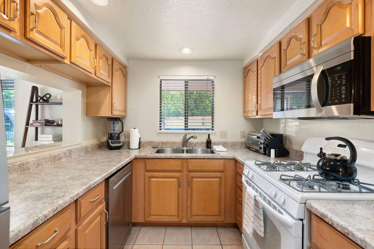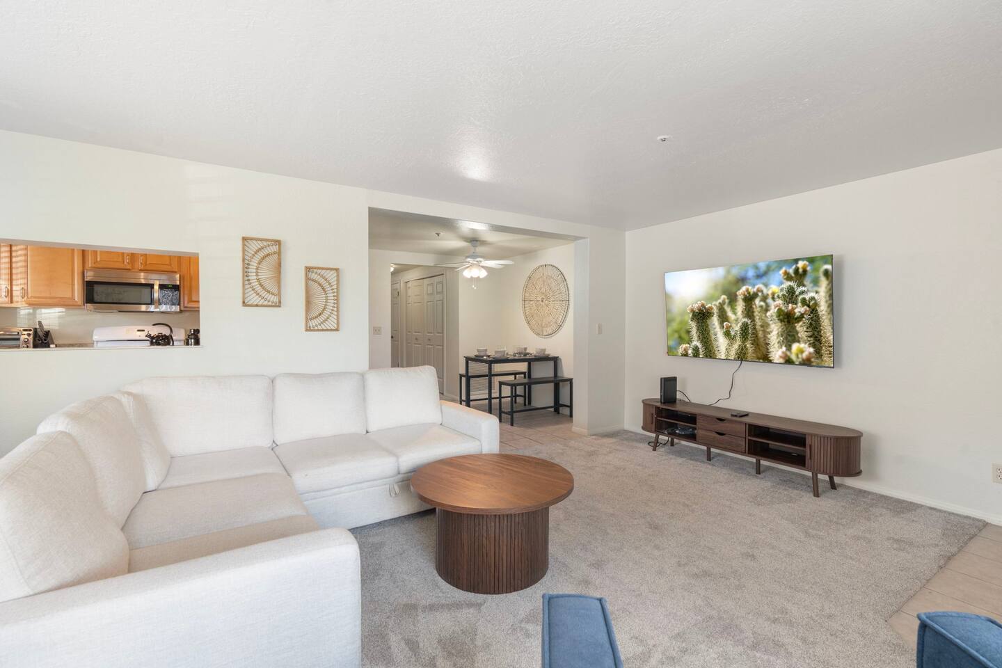 Offering 4,373 SF of living space across 4 units, this rental is the perfect blend of personal space and shared experiences. Featuring 7 bedrooms and 4 bathrooms, plus 4 sleeper couches, this property comfortably sleeps up 18 adults. With onsite laundry and 8 covered parking spaces, you may not need to drive after arrival. Situated on over 1/2 an acre, enjoy seeing deer, rabbits, and other wildlife in the yard with panoramic red rock views in the background. 1 minute drive (.5 mile) to Uptown, everything you need for a spectacular vacation is within reach. Unit A: King Bedroom with Dedicated Workspace Queen Bedroom with Walk-In Closet Double-Vanity Full Bathroom Full Kitchen with Dining Table and Living Room Private Covered Patio Unit B: King Bedroom Full Bathroom Full Kitchen with Dining Table Living Room with Fireplace Shared Covered Patio with Porch Swing Unit C: King Bedroom with Dedicated Workspace Twin Bedroom with 2 Twin Beds Full Bathroom Full Kitchen with Dining Table and Living Room Shared Covered Patio with Group Dining Table Unit D: King Bedroom Queen Bedroom Full Bathroom Full Kitchen with Dining Table Living Room with Dedicated Workspace Laundry: Washer and Dryer with Additional Supplies Private Storage Units for Luggage Drop-Off Curated for traveling groups, the property is perfect for getting together while also offering personal space for quiet mornings and comfortable nights. Each kitchen is fully stocked and equipped for cooking and each living room includes board games and activities.