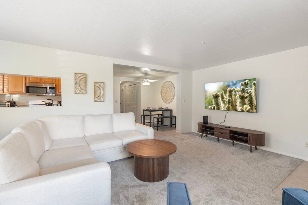 Unit D offers a peaceful 2-bedroom, 1-bath stay with comfort and style in mind. The airy living space is designed for relaxation, featuring a Smart TV and comfortable seating. A full kitchen with modern appliances allows you to enjoy meals at home, while two cozy bedrooms provide restful nights after adventure-filled days. Centrally located and close to Uptown’s best dining, shopping, and hiking, Unit D is ideal for families or small groups.